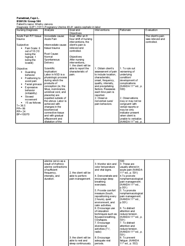 It is essential for a nurse at emergence room or caring a patient in a ward, other health care facility or at home to make nursing care plan acute pain. • registered nurse will formulate the plan after assessment information from all appropriate impaired skin integrity r/t immobility 2°to pain aeb 2cm erythematous sacral lesion 2.